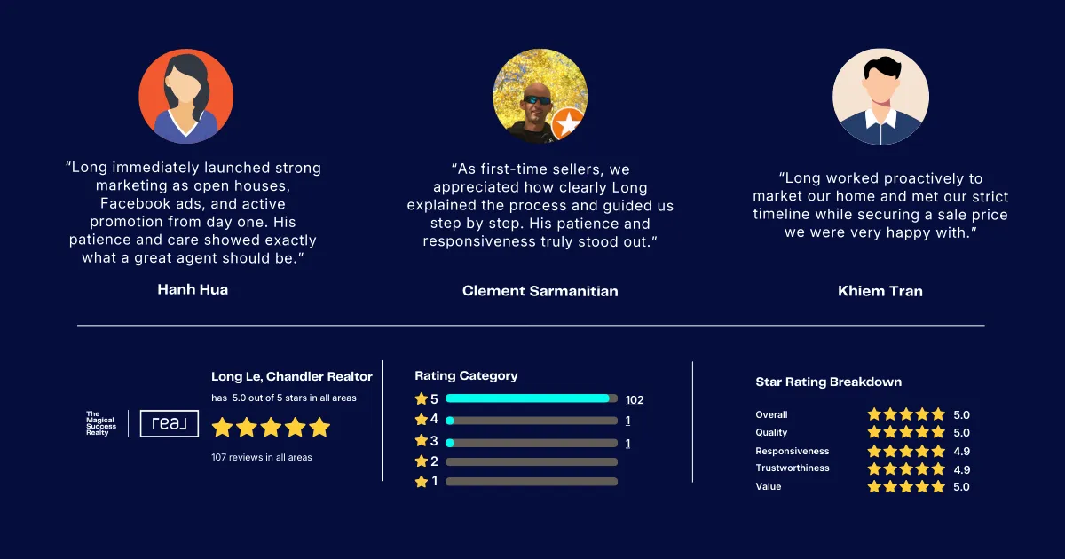 Schedule a consultation with Long Le, a leading real estate agent in Chandler, AZ, and start buying, selling, or investing in homes across Arizona today.